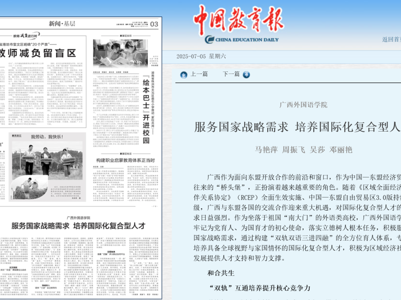 中国教育报 | 广西外国语学院:服务国家战略需求 培养国际化复合型人才