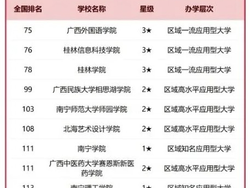 校友会2025广西壮族自治区大学排名,广西大学、广西外国语学院第一